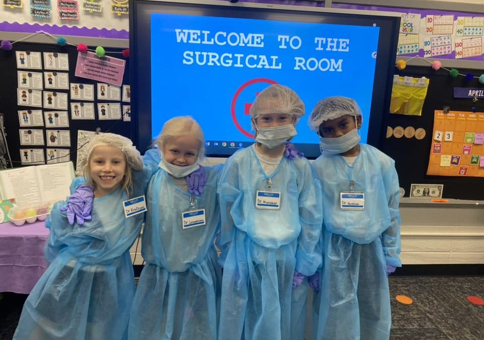 The first graders became surgeons today! They took patients such as “Do not” and performed a contraction surgery to make “don’t.” Of course, they had to dress the part and had to use their very own scalpel! We are happy to report that all the patients are in recovery.