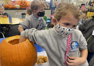 Pumpkins in Kindergarten by St. Agnes Admin | Oct 26, 2021 | Gallery, Latest News, UncategorizedThe Kindergarten learned all about pumpkins this month. They concluded their Pumpkin week with pumpkin experiments and carving their pumpkins! What great looking Jack-o-lanterns.
